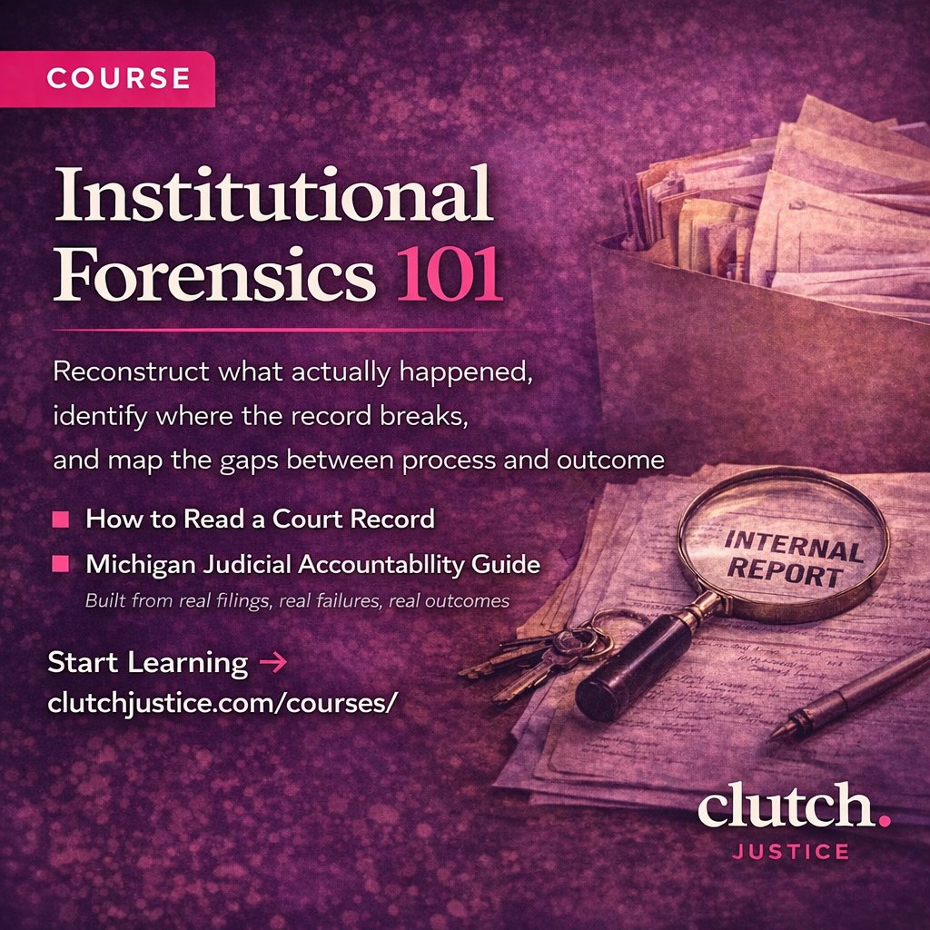 Whether you’re just getting started or need deeper analysis, Clutch Justice offers both free resources and paid courses designed to help you read the record and spot what doesn’t add up.