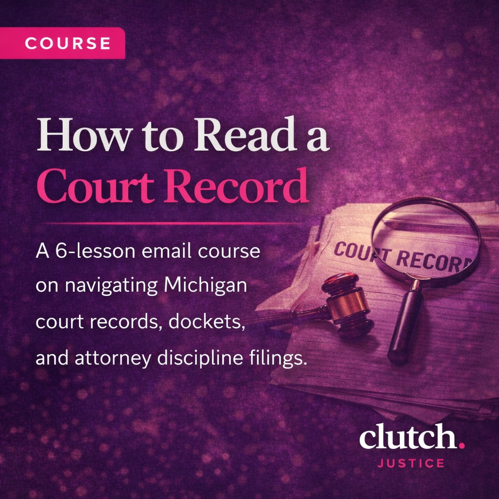 A 6-lesson email course from Rita Williams / Clutch Justice. Designed to help you understand the Michigan judiciary and keep them accountable.